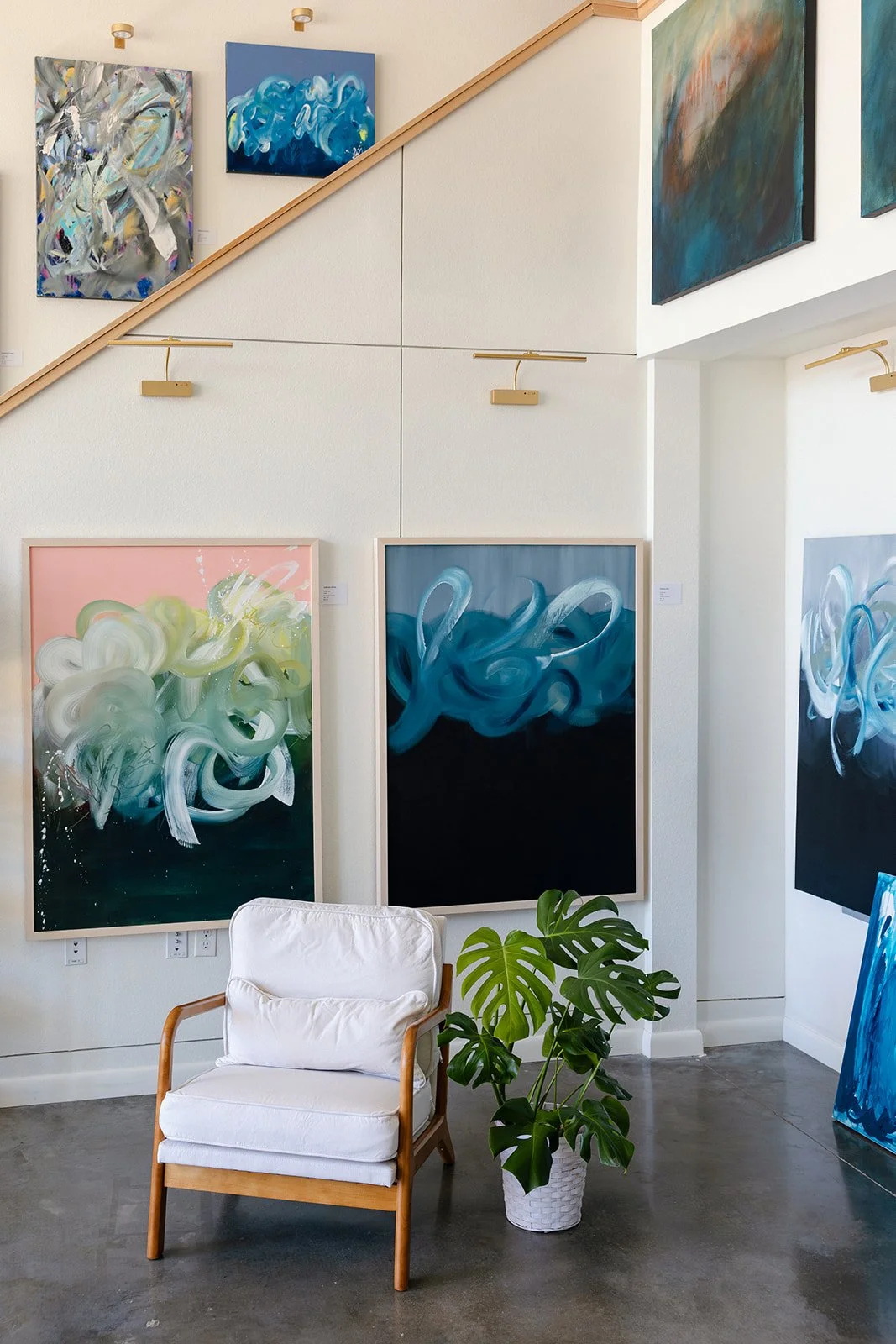 We primarily feature original artwork across all mediums: painting, sculpture, mixed media, and more. A small number of prints may be accepted alongside originals. All work must be ready to hang (wire hung or framed) or professionally displayed.